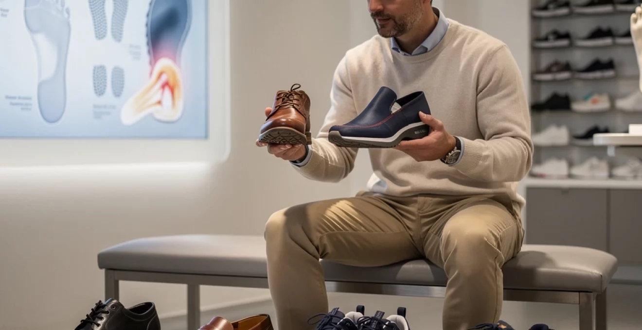 souvent aggravée par des chaussures insuffisamment amortissantes ou dépourvues de soutien de voûte plantaire. Le choix de chaussures confortables pour homme doit donc intégrer un talon légèrement surélevé (entre 1 et 2 cm), une semelle intermédiaire à fort pouvoir d’absorption des chocs et un support de voûte plantaire anatomique. L’épine calcanéenne, qui correspond à une excroissance osseuse au niveau du talon, résulte généralement d’une fasciite plantaire mal prise en charge. Là encore, l’utilisation de chaussures avec semelles amovibles, permettant l’intégration de semelles orthopédiques, représente une stratégie efficace pour réduire les contraintes mécaniques et soulager durablement la douleur.